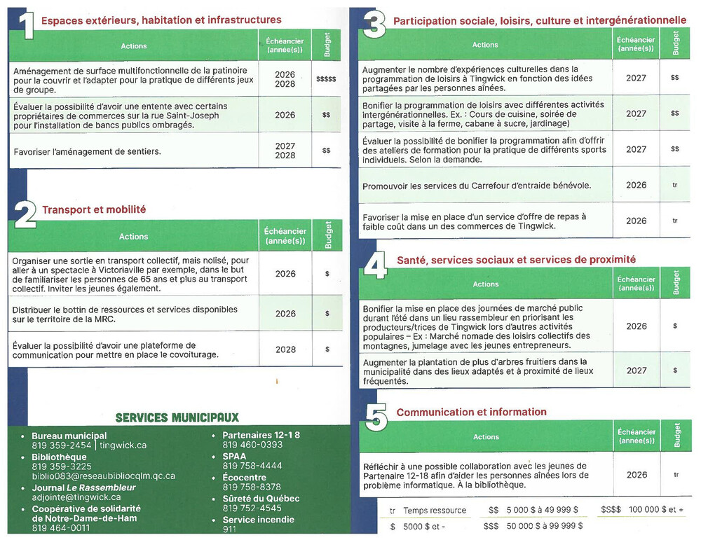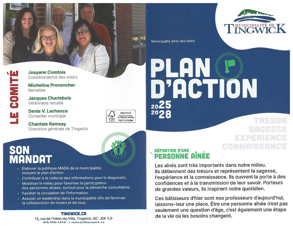 Plus de détails suivront concernant la formation du comité MADA. D'ici là, les personnes intéressées peuvent transmettre leur nom à madame Josyane Comtois, coordonnatrice des loisirs, au 819-359-2454, poste 114, ou par courriel à loisirs@tingwick.ca